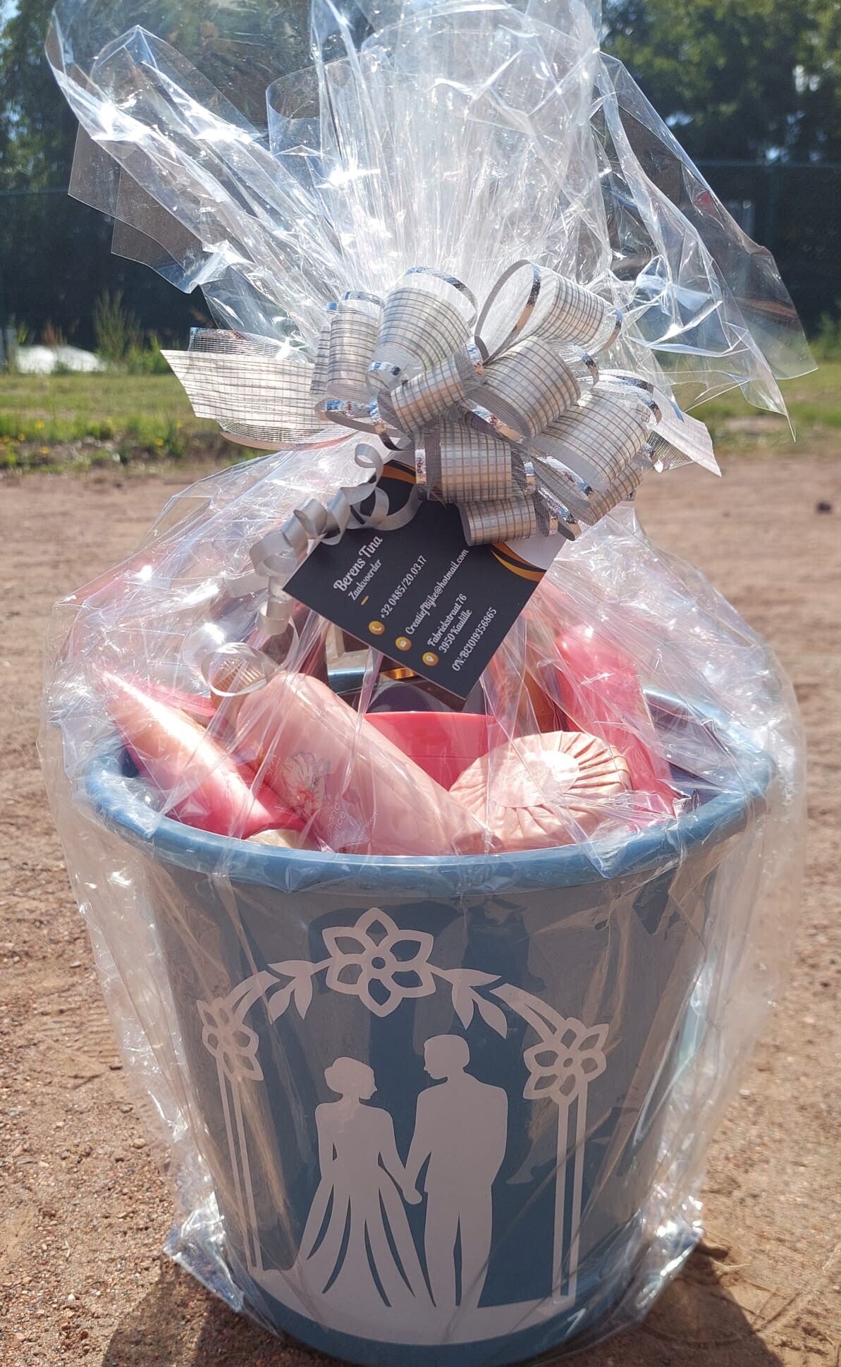 Emmer van 5 L met tekst :Huwelijk Prieel met getrouwd Koppel